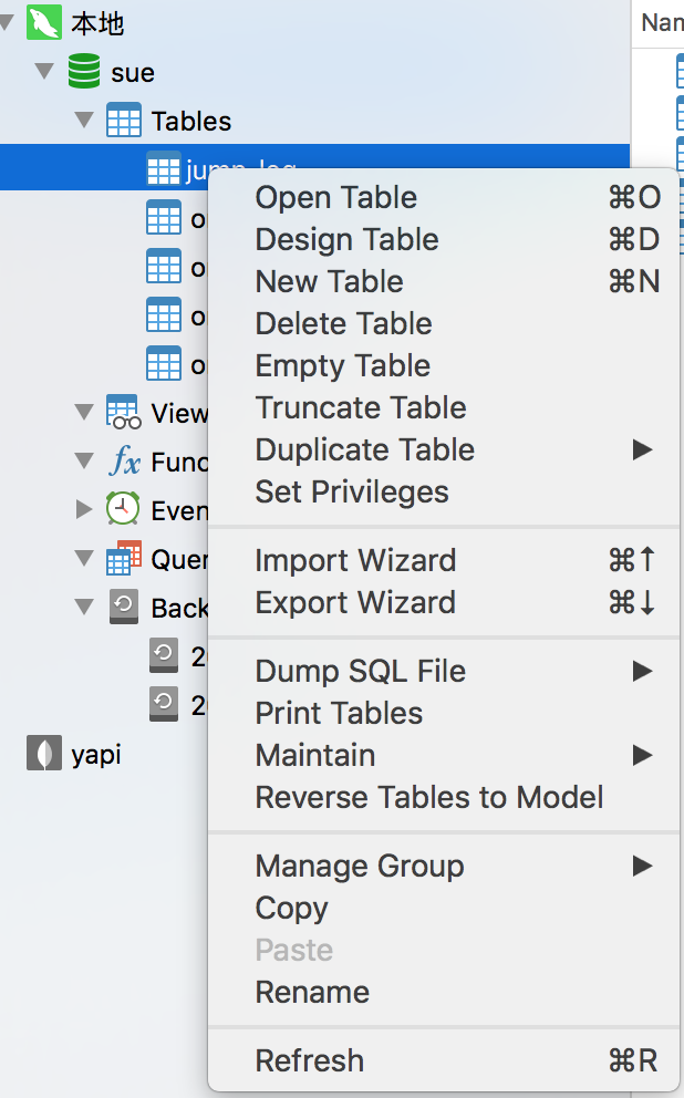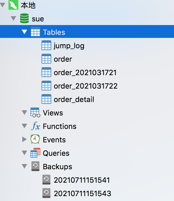 现在只需双击Tables节点,展开即可。除此之外,还能非常直观的看到试图、函数、事件、备份等功能。