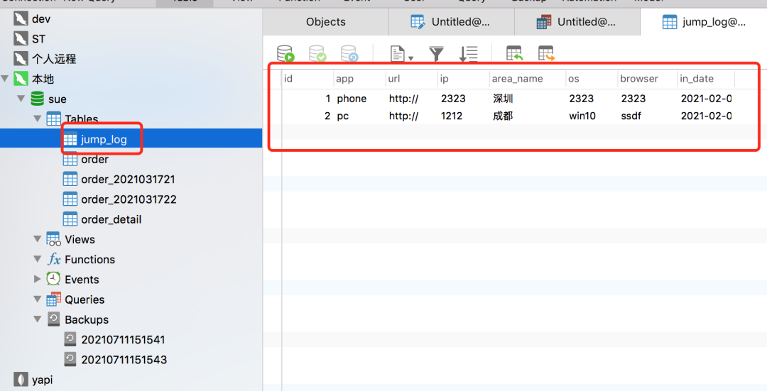 查一下表,已经有数据了: