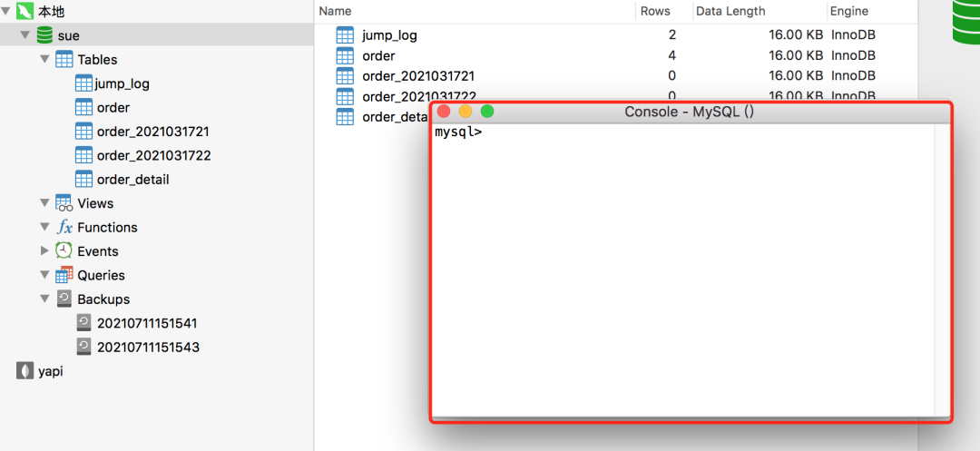 在右键单击某个数据库实例,出现的弹窗中如果选择Console,能调出mysql客户端: