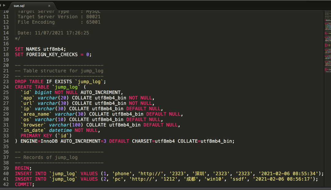 其内容是很多insert语句,这不是我们一直想要的初始化脚本吗?
