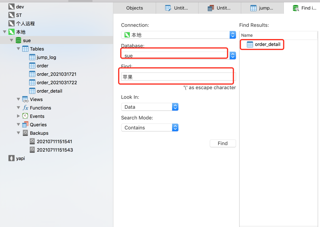 如果选择Find in database,能从整个数据库实例的所有表中,查找某个关键的数据: