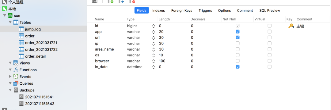 如果选择Desgin Table,会弹窗表设计窗口,默认的tab是Field: