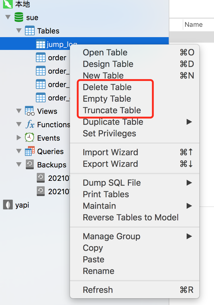 Delete Table:物理删除表 Empty Table:清空表中的数据,但表任然保留 Truncate Table:逻辑删除表