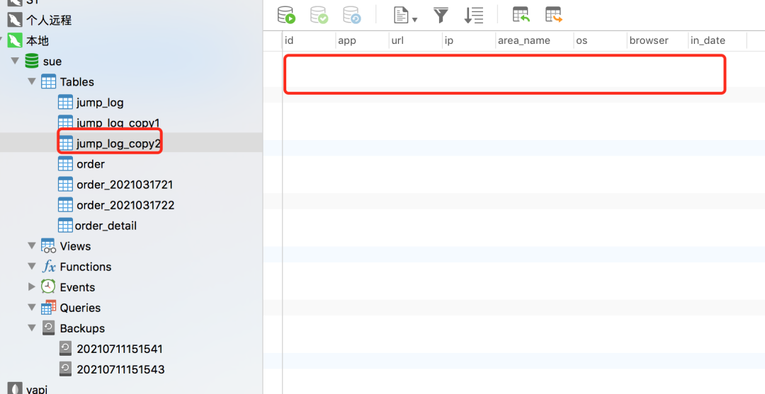 如果选择:Structure,则只复制表结构,数据库也会自动创建一张新表,但数据是空的: