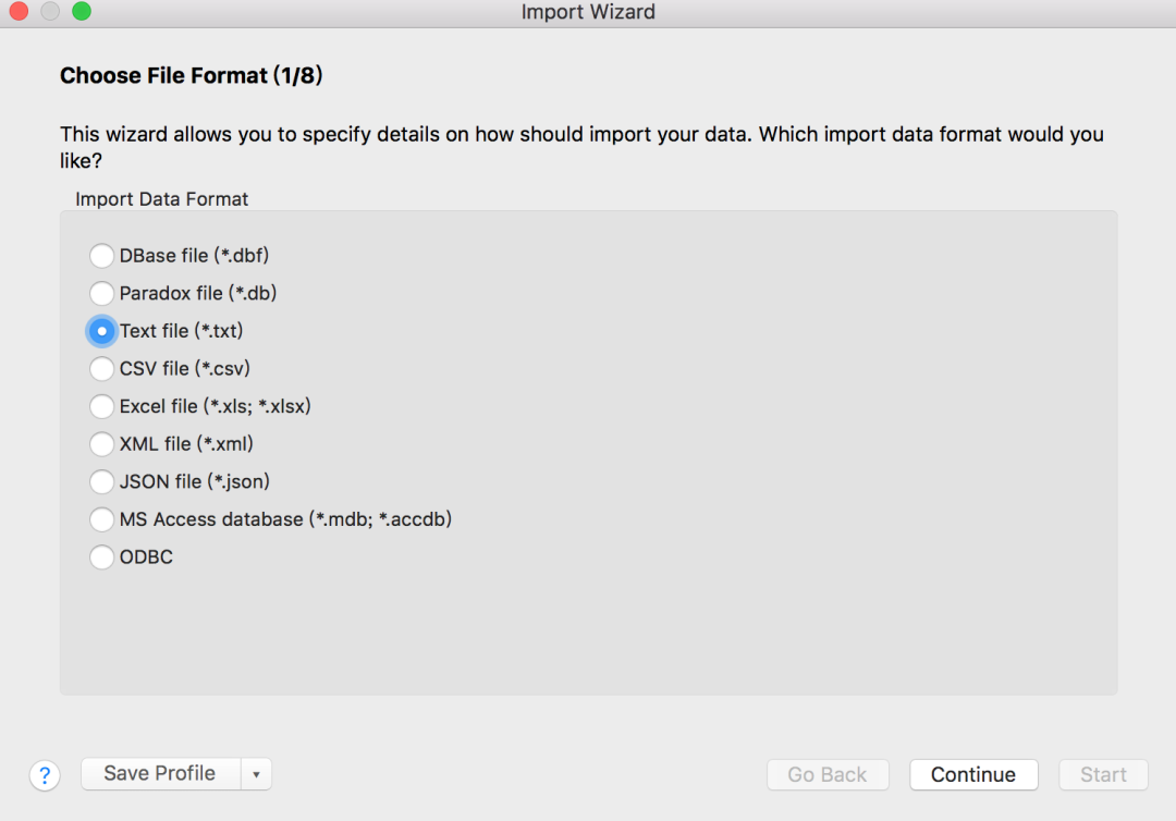 目前Navicat Premium允许导入文件格式包括:dbf、db、txt、cvs、xls、xlsx、xml、json等。