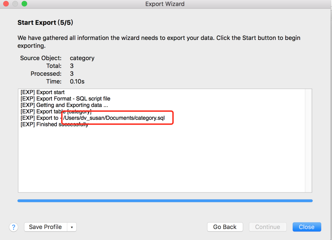 最终会导出到xxx.sql文件中: