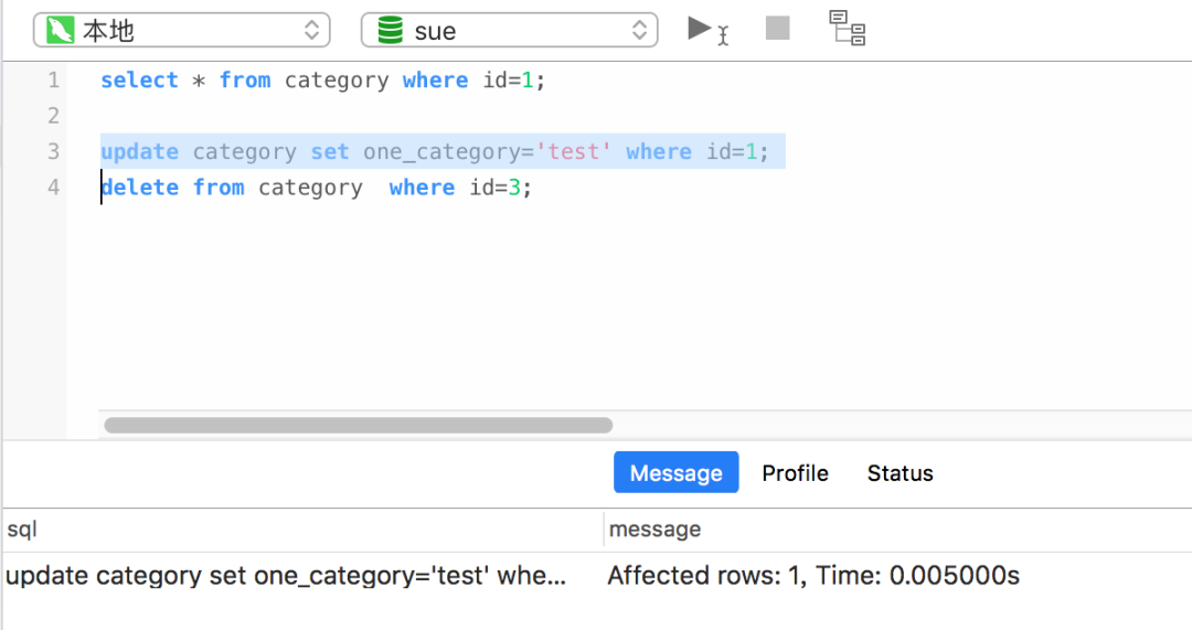 虽说该窗口的名称是查询窗口,但并非仅仅支持查询操作,还可以执行其他操作,比如:update、delete、alter、drop等等。