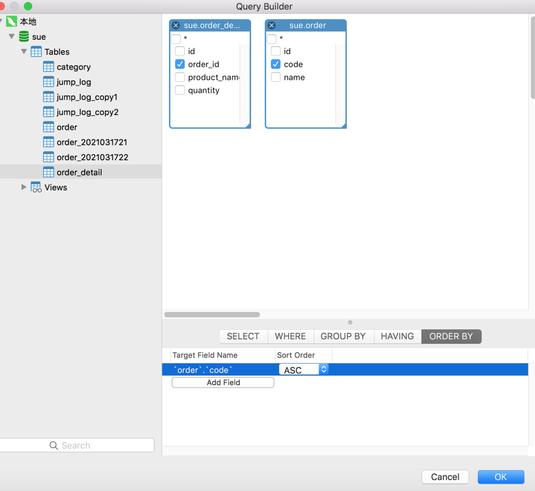点击ok之后,会自动生成sql语句: