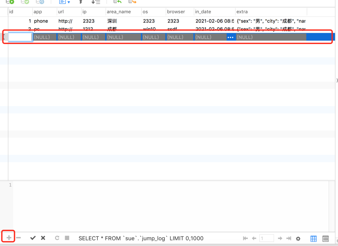 就会在一行空数据,然后在里面填值即可。