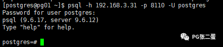 步骤一:A库必须和B库网络上必须互通,ssh登录B库服务器,使用psql工具连接数据库A。