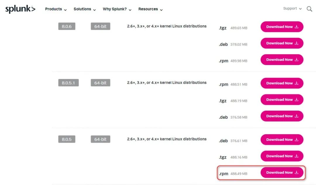 https://download.splunk.com/products/splunk/releases/8.0.5/linux/splunk-8.0.5-a1a6394cc5ae-linux-2.6-x86_64.rpm