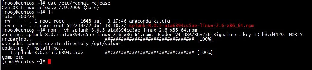 rpm -ivh rpm -ivh splunk-8.0.5-a1a6394cc5ae-linux-2.6-x86_64.rpm