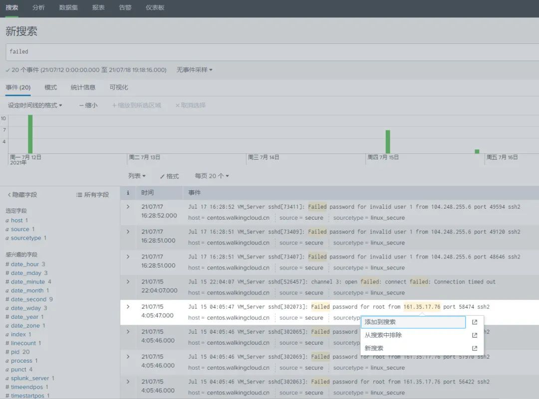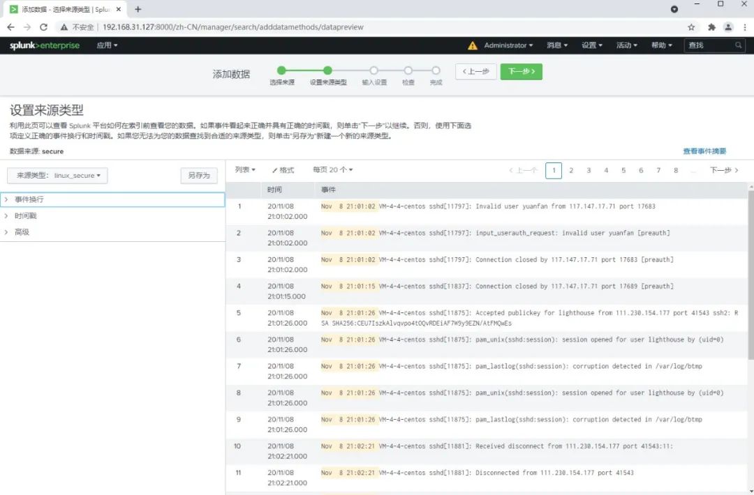 例如我导入某Linux服务器/var/log/secure系统安全日志