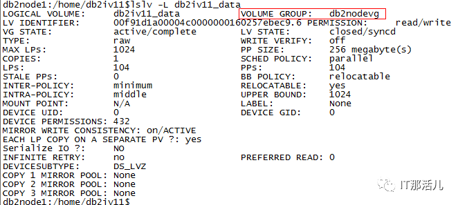 (以“/dev/rdb2iv11_data”为例,lv_name为“db2iv11_data”,去掉前面的“/dev/r”)