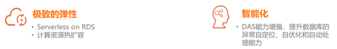 另一方面,在云原生之后我们会去嫁接智能化,让RDS更智能地帮助我们的业务开发,提升数据库的异常自定位,以及让数据库拥有更好的自治能力。