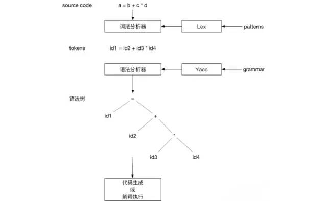 首先,我们需要了解词法分析和语法分析这两个概念,属于编译原理中的基本概念(大学学的 都快忘了),这里我不做理论解释了,有兴趣的可以回去复习复习下编译原理,我就直接带入例子简单的讲解下过程。