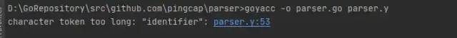 有了规则文件,就可以通过规则文件来生成解析器了,也就是这里的parser.go,利用goYacc工具,这个地方大家可能会遇到一个坑,那就是我们的Go环境中原本就有这个工具,又或者你自己去Github 上面拉取了goYacc的代码,自己在本地build 一个exe执行文件,然后放到 $GOPATH/bin 下面,然后执行下面的命令:
