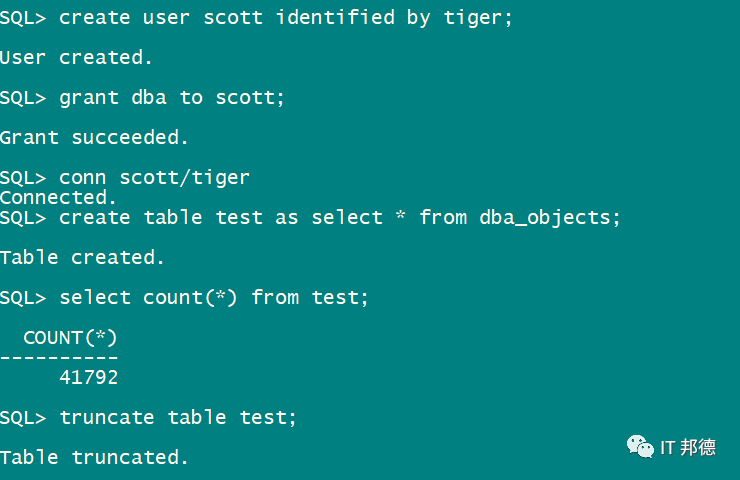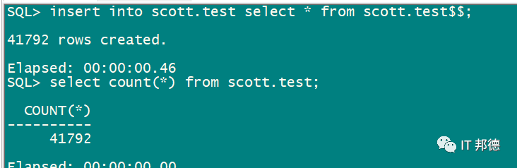 6.使用sys用户把恢复的数据从scott.test$$中插回scott.test表