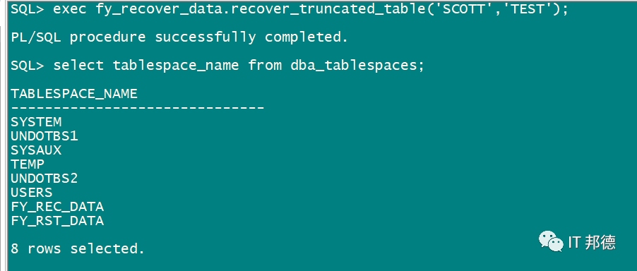 exec fy_recover_data.recover_truncated_table('SCOTT','T');