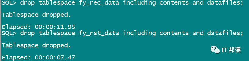 7.使用sys用户删除恢复时产生的2个表空间及数据文件