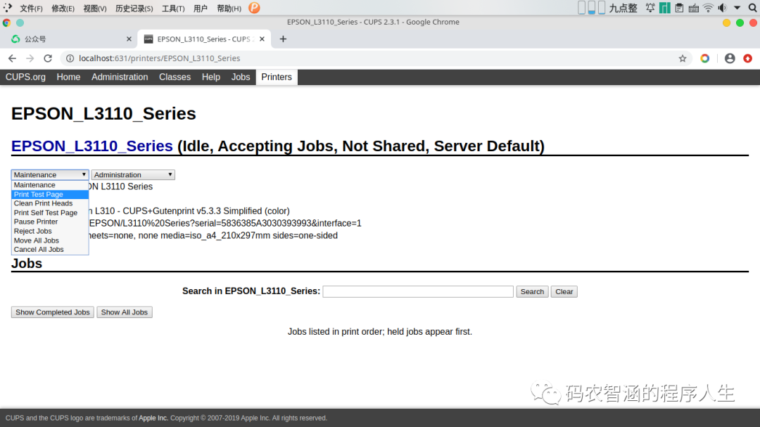 会显示 已经设置成功的页面,并自动跳转至Printers页面