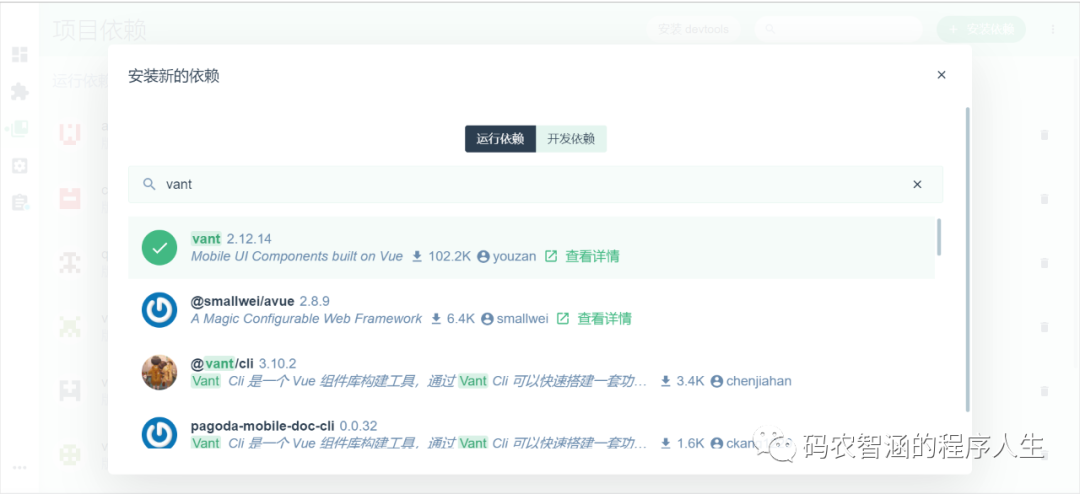 (5)在 dashbord 安装 vant UI库