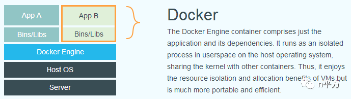 Docker 在容器的基础上,进行了进一步的封装,从文件系统、网络互联到进程隔离等等,极大的简化了容器的创建和维护。使得 Docker 技术比虚拟机技术更为轻便、快捷。
