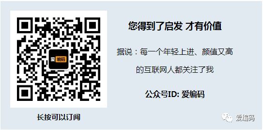如果对 Java、大数据感兴趣请长按二维码关注一波,我会努力带给你们价值。觉得对你哪怕有一丁点帮助的请帮忙点个赞或者转发哦。关注公众号【爱编码】,小编会一直更新文章的哦。