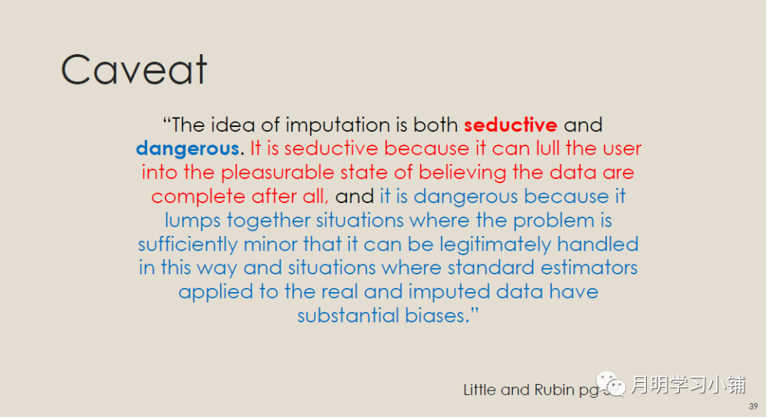 最后还是要提醒大家,多重填补也不是万能的解决办法。越是能填补,越是要小心。(多重填补应该会是下一期的内容)