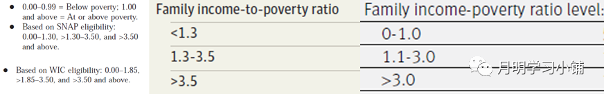 虽然NHANES中与经济状况相关的变量有三个,但是最常用以及官方最推荐的是家庭收入贫困比(the ratio of family income to poverty)。