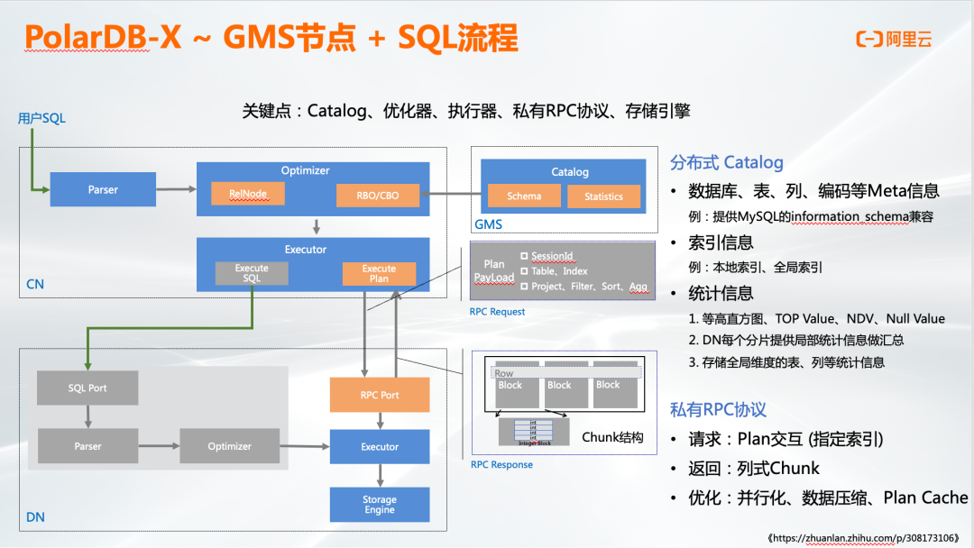 关键点:Catalog、优化器、执行器、私有RPC协议、存储引擎