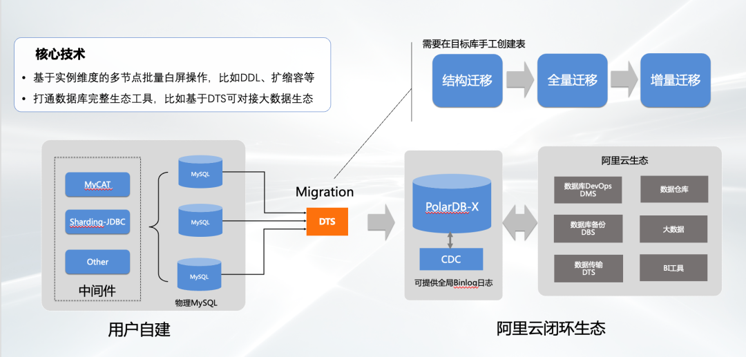 关键点:兼容MySQL binlog/Replication机制,解决数据库上云在数据割接时的数据迁移和回流问题