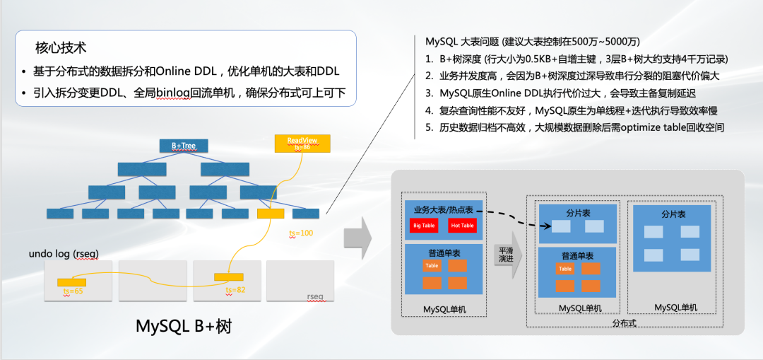在实际的应用过程中,如果大表是超过5000万的,我们建议用户做一个拆分。