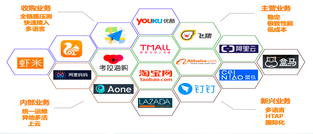 除了电商类的业务,阿里巴巴还有很多自营的业务,例如高德,钉钉,飞猪,盒马等,都是使用了PolarDB-X分布式数据库。