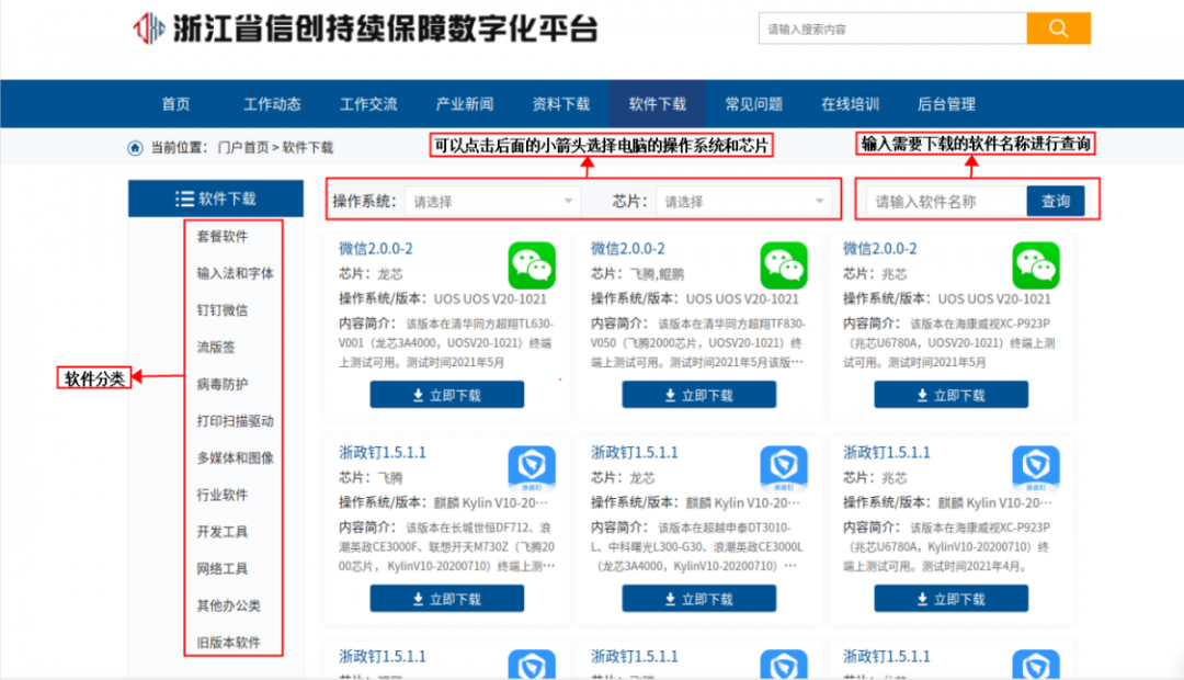 为了大家更好的使用国产电脑,我们浙江省信创持续保障数字化平台也提供了常用软件的下载渠道,让小编来带领大家熟悉一下吧。