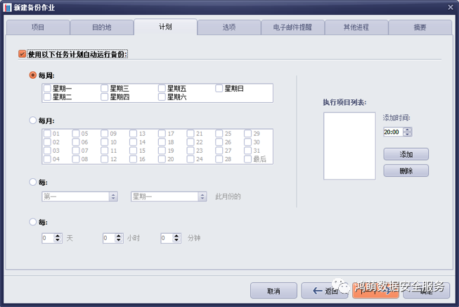 5)设定日程计划,实现定期、不限次数的自动备份任务