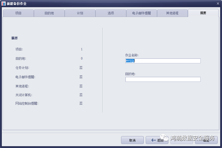 6)设置备份任务名称,浏览任务摘要信息