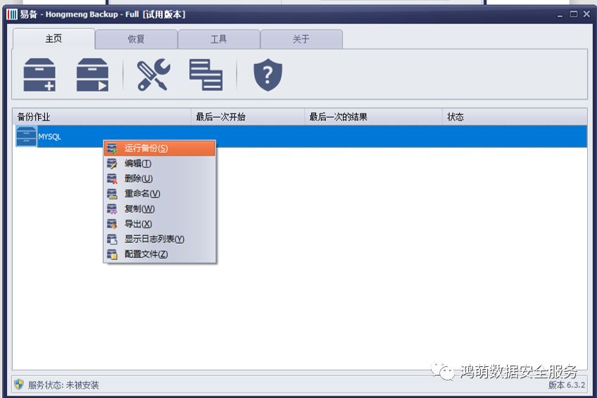 保存完成备份任务之后,用户即可在主页右击该任务,选择立即运行。或在设定的时间,自动启动备份任务。