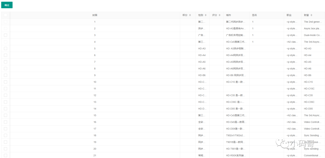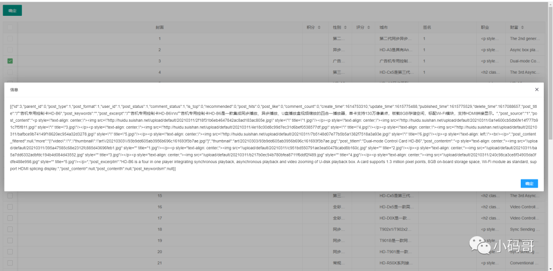 {field: 'post_content', title: '职业', width: 100},