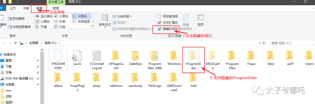盘中的查看,--> 再点击隐藏的项目的功能,就能得到了。