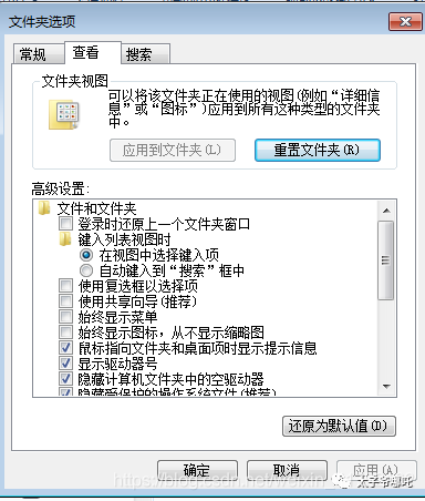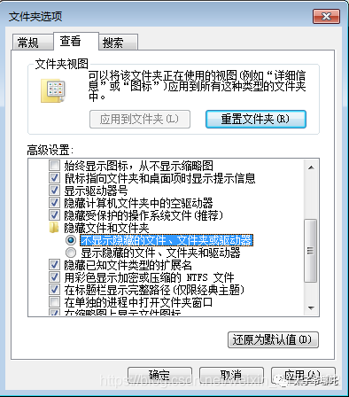 第三步:在高级设置中向下搜索,可看到显示隐藏文件夹,点击确认。