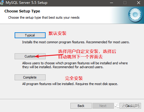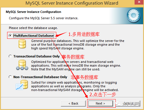 (服务器类型,专注于事务处理,一般)、Non-Transactional Database Only