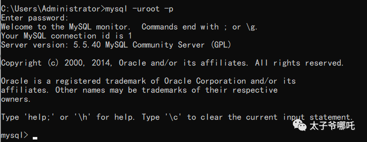 窗口,输入下列命令:mysql -uroot -p出现下面的提示时直接敲回车,不用输入密码: