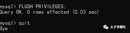 FLUSH PRIVILEGES;然后输入如下命令即可退出: