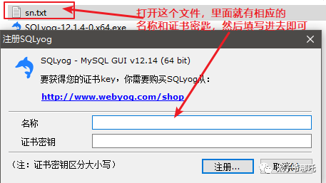 ,里面有相应的名称和证书密匙,可以选择其中一个注册。然后进入登录界面,按步骤登录即可,账号和密码就是你安装