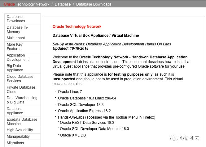 当然,你还可以下载 Oracle 的虚拟机,在这个 7.7 GB 的虚拟机中,安装好了一个大礼包,可以供我们测试学习。