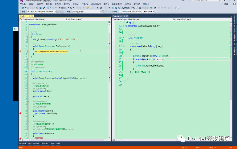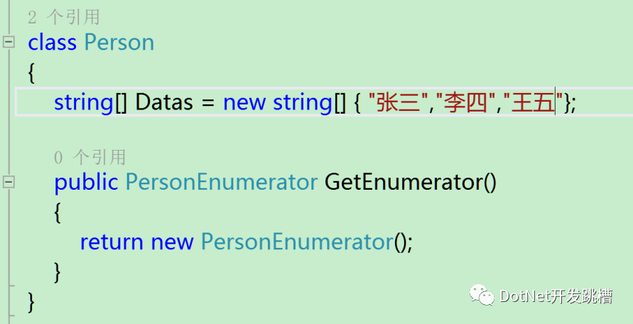到目前为止已经提供了编译器错误提示的所有成员,但实际运行是毫无意义的,因为通常编程中实现遍历的对象都是一个序列,但是目前示例中Person类型并不是且成员未包含序列。我们将为示例中Person类型添加一个序列,作为foreach“遍历的对象”。