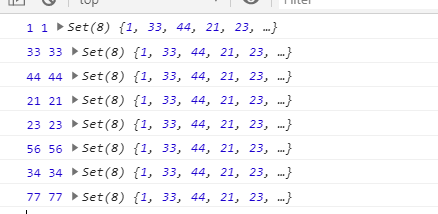 const result = new Set([1,1,33,44,21,23,56,34,56,56,77,77]);