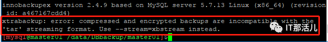 当使用tar格式的流备份时,直接使用“--compress”参数来进行压缩会提示不兼容报错,报错截图如下所示: