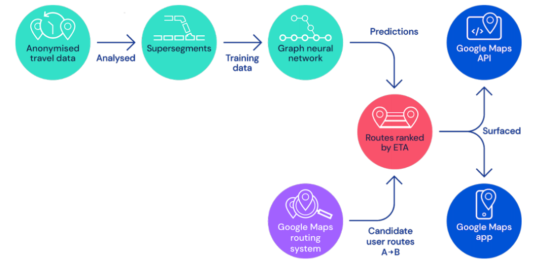 谷歌地图团队已经与 Alphabet 子公司 DeepMind 合作,使用 GNN 来改善地图 ETA 预估时间预测。DeepMind 利用 GNN,成功提升了谷歌地图在柏林、东京、悉尼等大城市的实时 ETA 路径准确率。